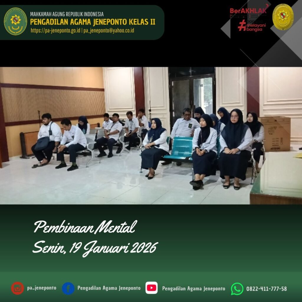 Rapat pembinaan mental dan pembinaan umum aparatur, melalui kegiatan pembinaan ini, seluruh aparatur Pengadilan Agama Jeneponto diharapkan :