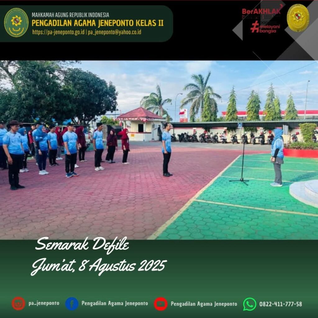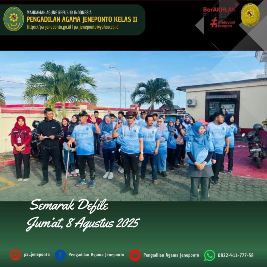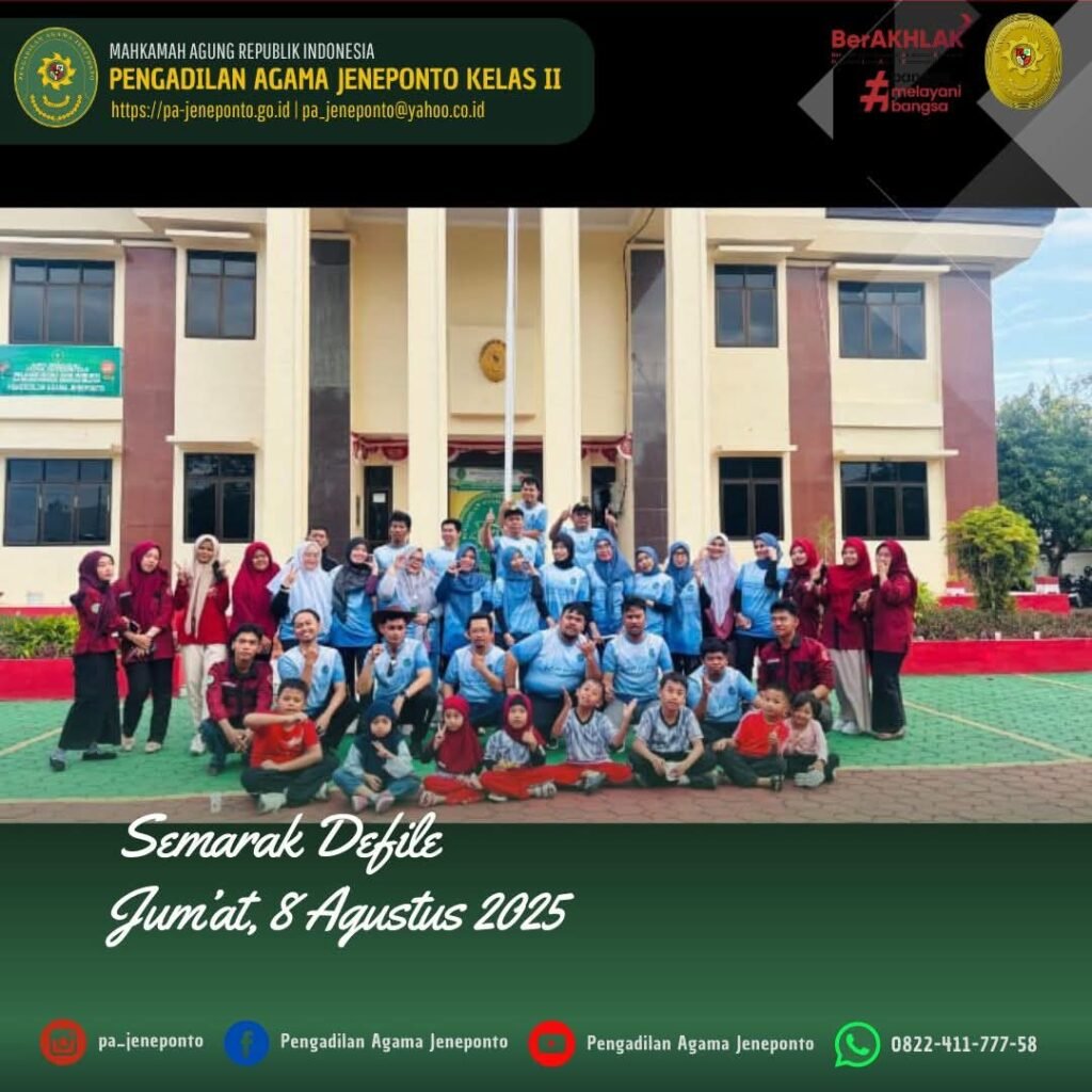 Jum’at Sore pukul 16.00 s.d. selesai, Semarak Defile Pembukaan Perlombaan di Pengadilan Agama Jeneponto dalam rangka HUT RI ke-80 tahun!