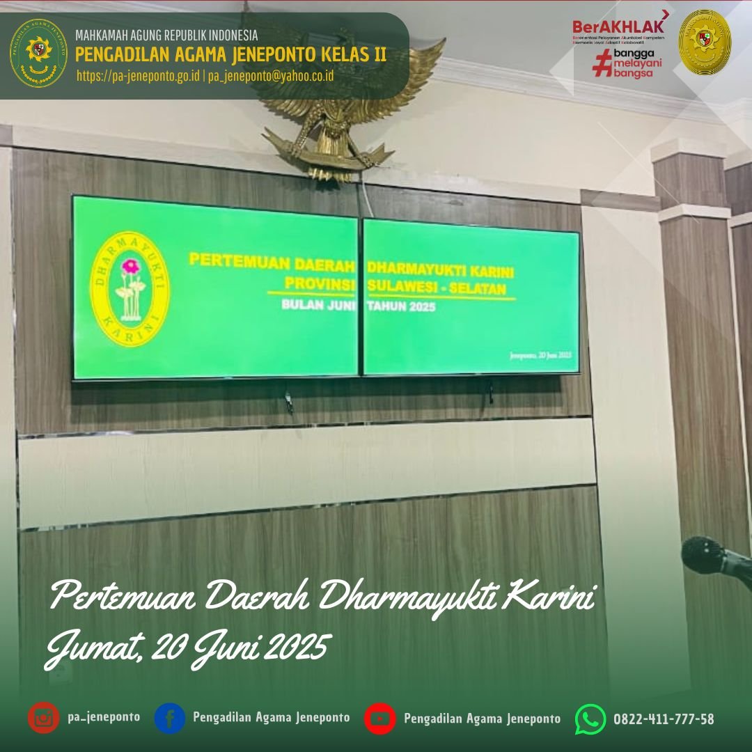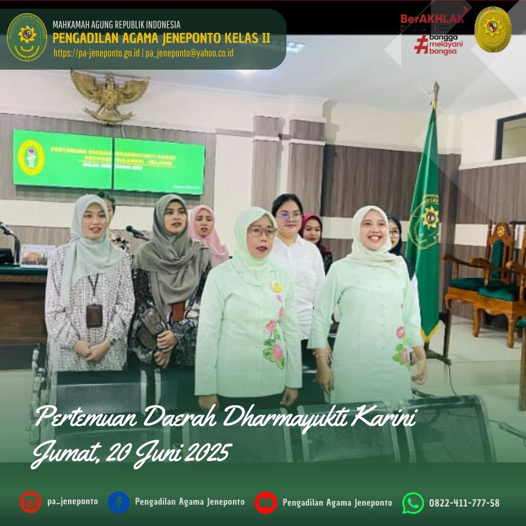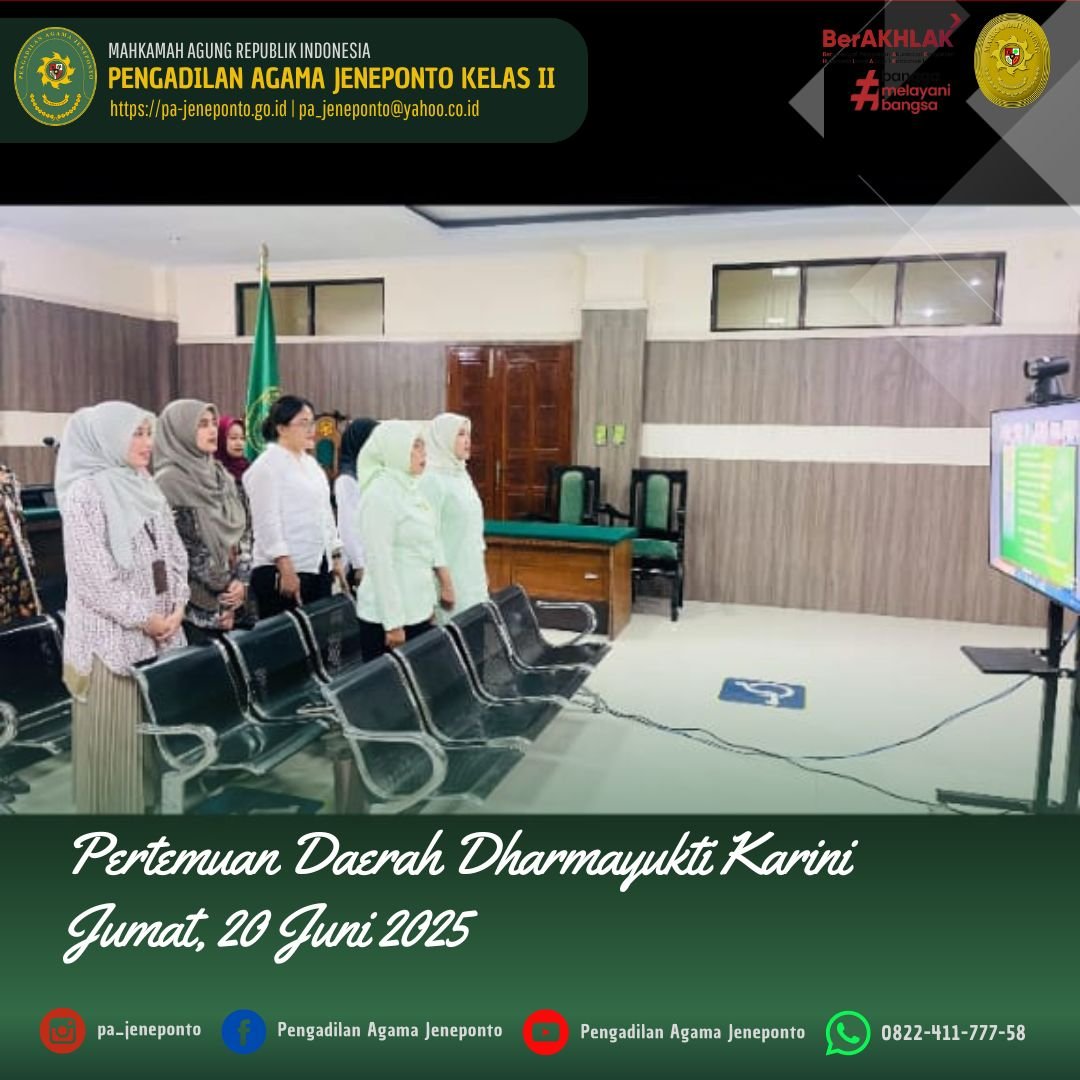 Kegiatan ini dilaksanakan di Ruang Sekretariat Dharmayukti Cabang Jeneponto dan dihadiri oleh Pengurus Dharmayukti Cabang dari Pengadilan Agama Jeneponto dan Pengadilan Negeri Jeneponto.